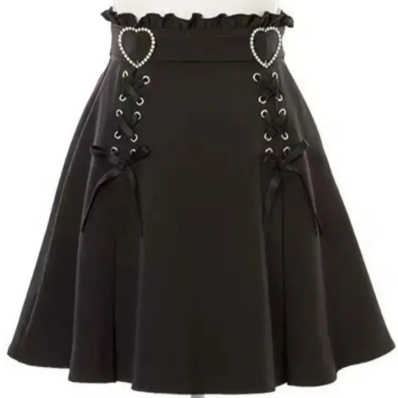 2025 Y2k Aesthetic Harajuku Style Sweet Girl High Waist Mini Bandage Skirt Slim Women Solid Streetwear Gothic Jk Saia Feminina